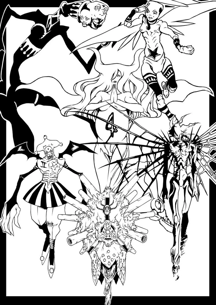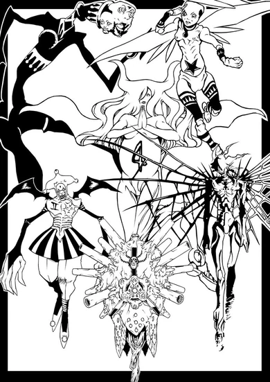 - Темная звезда Гита - За спиной огромного Акума появляется перевернутая пятиконечная звезда Давида, из углов которой выходят и атакуют множеством энергетических пересекающихся лучей, стреляющих на километры.