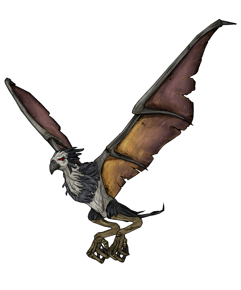 Кровокрыл - Первоначально животное с планеты Пандора, птица вида крыл, являвшаяся питомцем искателя Сокровища по имени Мордекай. Будучи пойманным Красавчиком Джеком, был экспериментально изменен с помощью шлака, изменившись внешне и обретя ряд способностей.