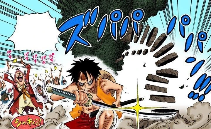 - Как минимум одна из теней, поглощенных Луффи, обладала выдающимися навыками фехтования. Одной атакой Луффи смог разрубить дерево на множество ровных кусочков. (рис.1)