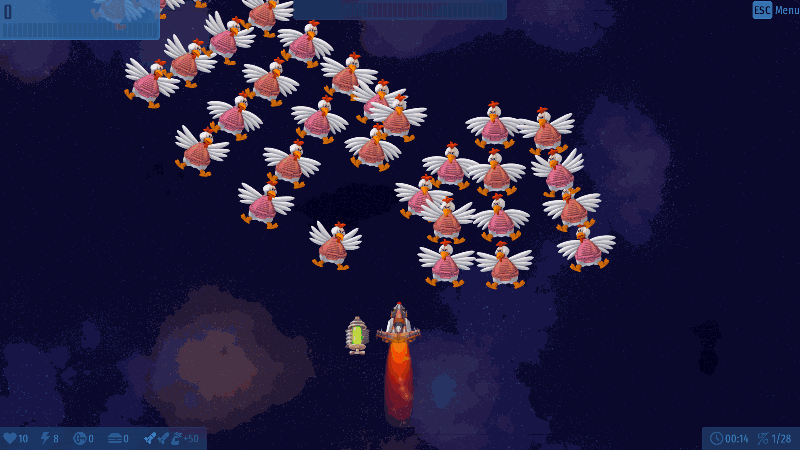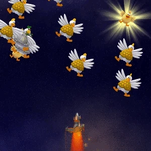 - Очень мощная ракета, которая взрывает всё в огромном радиусе. Ракета даётся за сбор определённого количества куриных ножек.