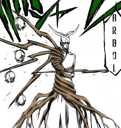 - Арбол ("Дерево черепов") - По команде "Расти, Арбол!", тело Рудборна обвивают деревянные ветви, другие ветви появляются с правой стороны тела, на которых растут черепа. В полной форме у него за спиной вырастает сразу десять ветвей, а вниз вырастают подобие корней, которые впиваются в землю, из чего он, вероятно, не способен передвигаться, либо передвигается очень медленно. Также у него в руках тоже появляется ветвь, с помощью которой, вероятно, он может сражаться. (рис.5)