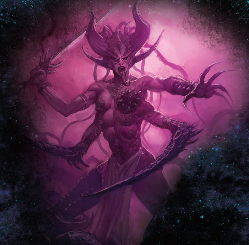 Имя: Слаанеш, "Принц Наслаждения", "Повелитель Избытка", "Темный принц", "Совершенный Принц", "Принц Хаоса" (люди) и "Та, Кто Жаждет" (эльдар)