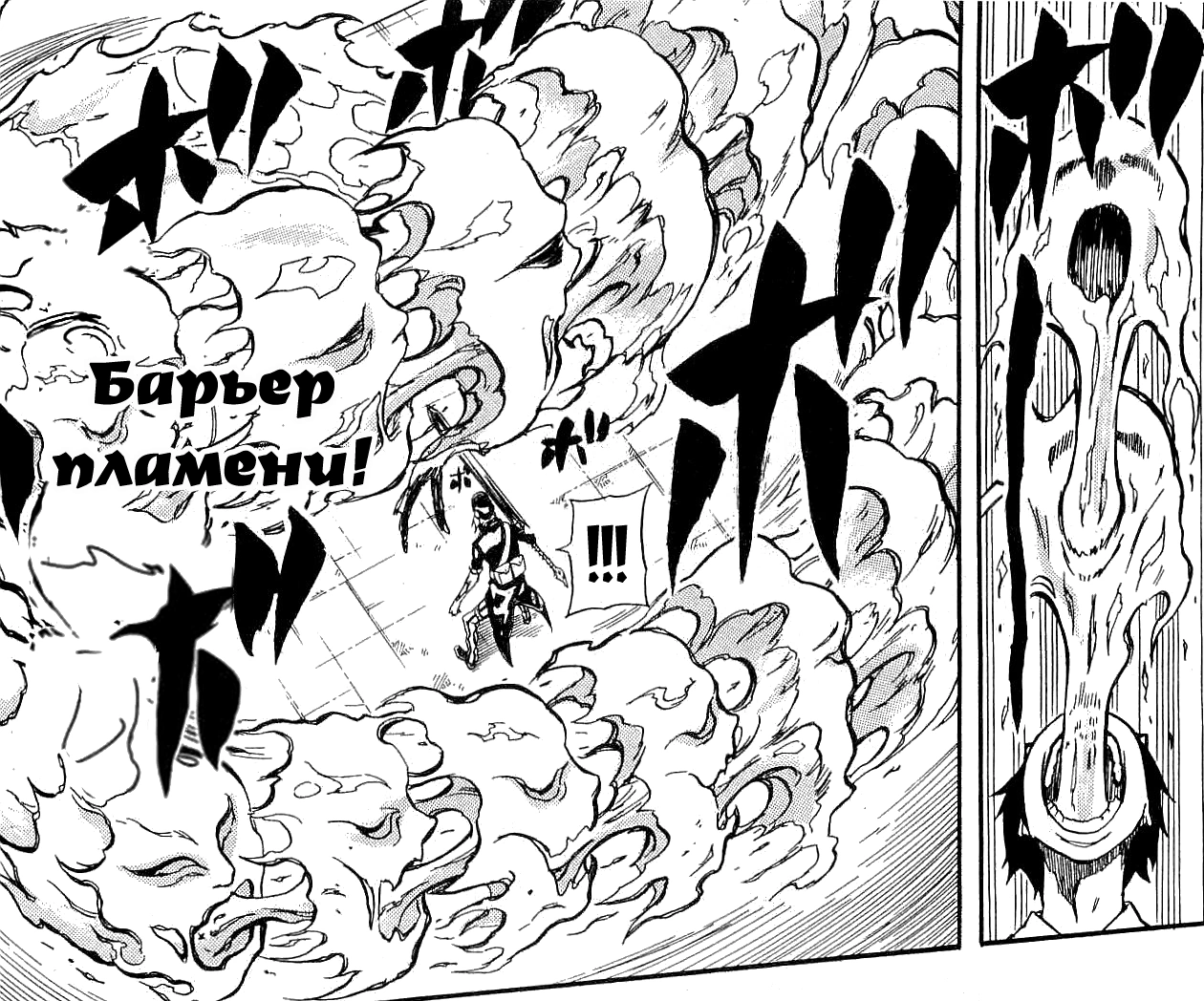 - Барьер пламени - Окружает противника стеной огня в виде огромных голов, из-за чего внутри барьера резко снижается количество кислорода.