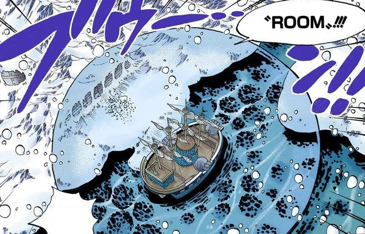 ("Room") - По одному желанию Ло создает сферическую зону вокруг себя, в которой может использовать все техники своего Фрукта. Зона "Пространства" может варьироваться от нескольких метров до километров, но чем она больше, тем больше затрачивается жизненных сил. (рис.1-3)