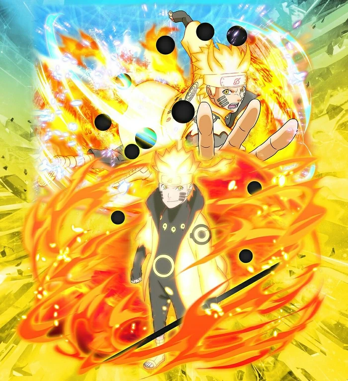 - Биджудама ("Шар Хвостатого Зверя") - В отличие от "Биджудамы" в форме с четырьмя хвостами, Наруто способен создавать атаку практически без подготовки, не говоря о том, что она намного сильнее.