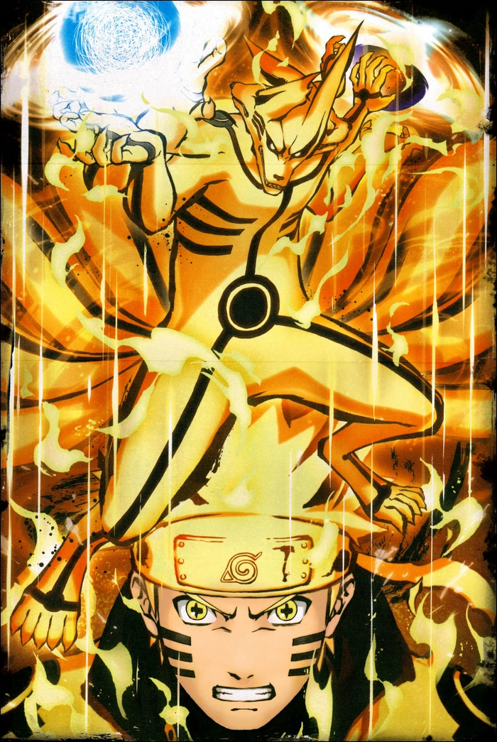 Режим Чакры Кьюби - Отделив чакру Кьюби от его ненависти, Наруто овладел новой, более сильной формой. В этой форме он полностью покрывается чакрой с необычным рисунком по всему телу. Все его характеристики многократно возрастают. Помимо этого, Наруто способен изменять форму чакры лиса, создавая, например, множество лап из чакры.