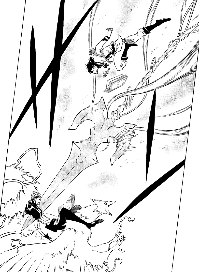 Сильные стороны: Имеет гримуар с четырехлистным клевером, что дает ему преимущество; обладает духом ветра - Сильфидой